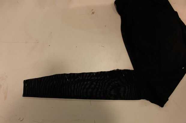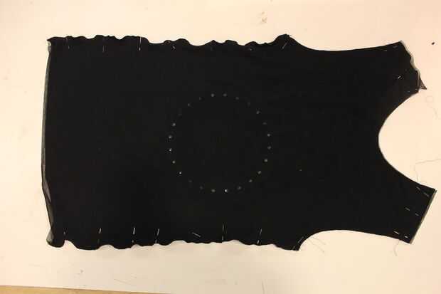 Coser los hombros y el pecho, la espalda, juntos. Luego coser la costura del hombro, luego hacia abajo el brazo del brazo y repita el procedimiento en el otro brazo.