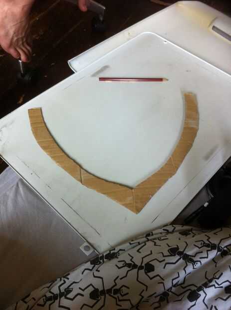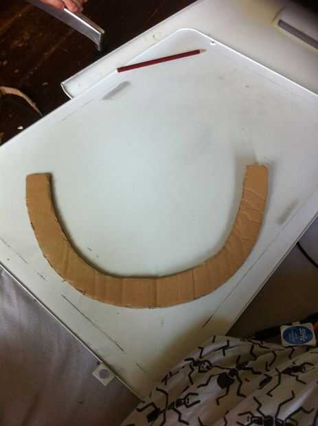 Cuando se haya decidido por un estilo de dibujar una forma áspera en su cartón en lápiz y recortarlo. Una vez cortado dóblalo en dos así que usted puede cortar simétricamente. Probarlo en vez en cuando para asegurarse de que cabe.