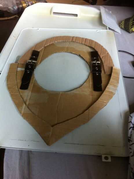 Primero echar un vistazo por internet para tener una idea para su diseño, yo busqué en Google; armadura de cuello, cuello armadura, Gola. Mi diseño consiste en una placa y una placa trasera, ambos tienen refuerzos alrededor del borde externo. La parte delantera y la placa están conectadas con 2 tiras pequeñas encima de los hombros.