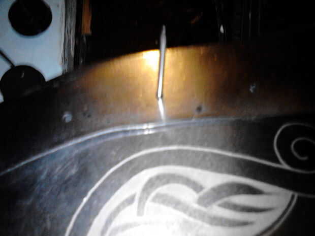 Usted necesita encontrar algún drillbits que están cerca (pero no bajo) el tamaño de su nails(rivets). He usado clavos de 1,5 mm para los refuerzos y unos 4 mm clavos para fijar las correas, así que usé una mechas de 2mm y 5mm.