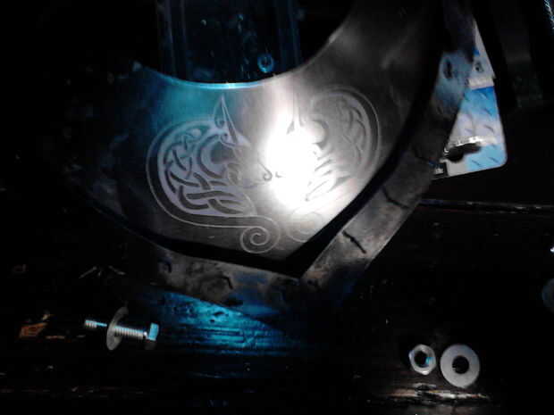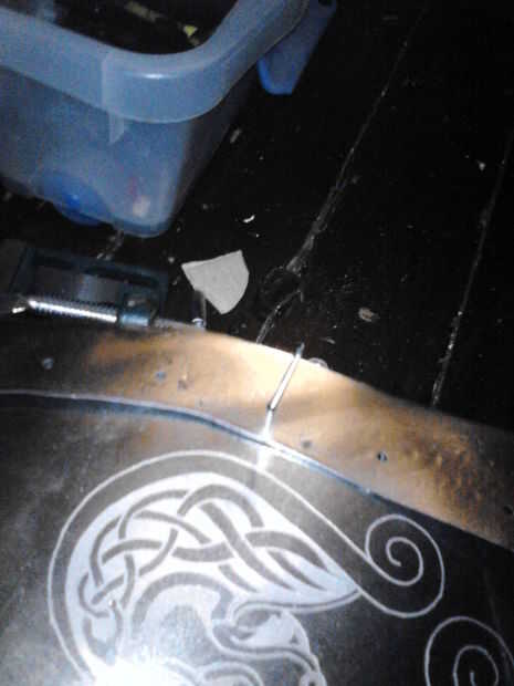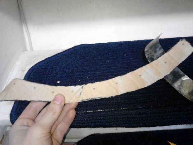 Tras perforar el orificio para las correas perforó un agujero en la correa y había asegurado para el orificio inferior con un tornillo de una tuerca y luego perforar el segundo orificio usando el agujero en el metal como guía.