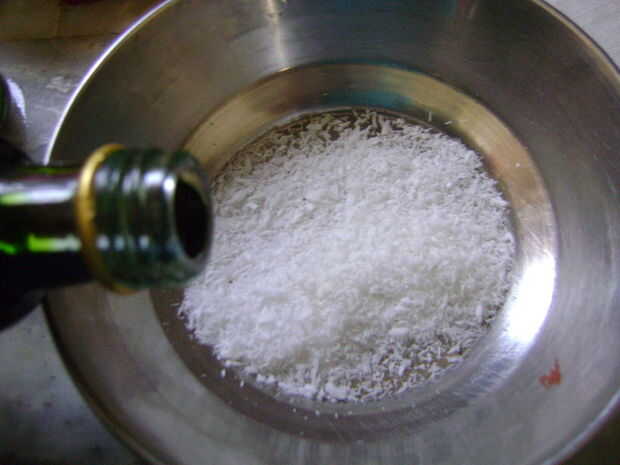 Tomar 1 cda de copos de coco en un bol pequeño.