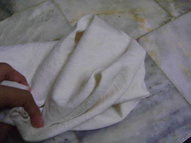 Doble el paño y unir todos los rincones de tu mano.