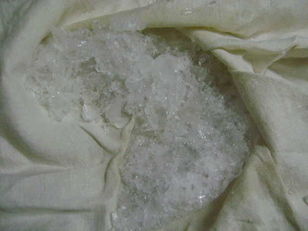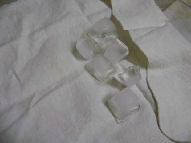 Tomar un paño de algodón limpio y poner en 6-7 cubos de hielo en él.