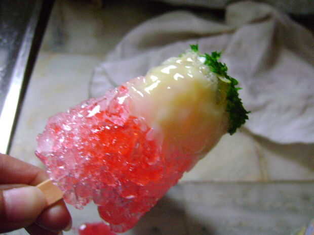 También, verter sobre la leche condensada en él. y viola... Chupar y disfrutar de la frescura del hielo afeitado en un palo o como lo llamamos Gola Ganda!