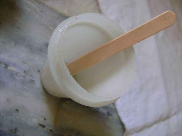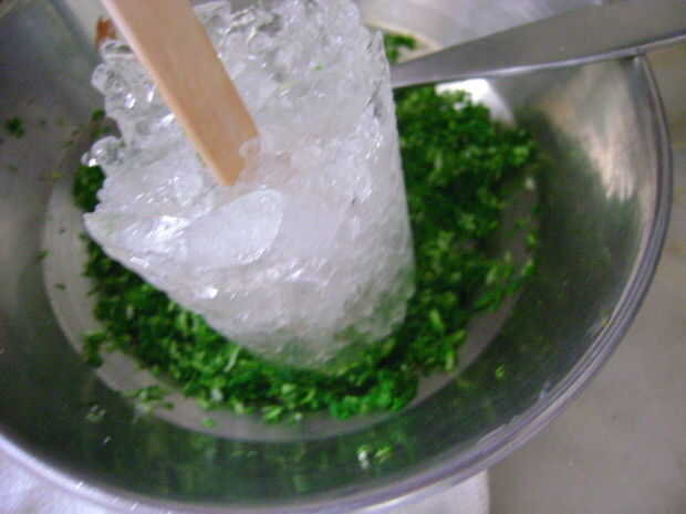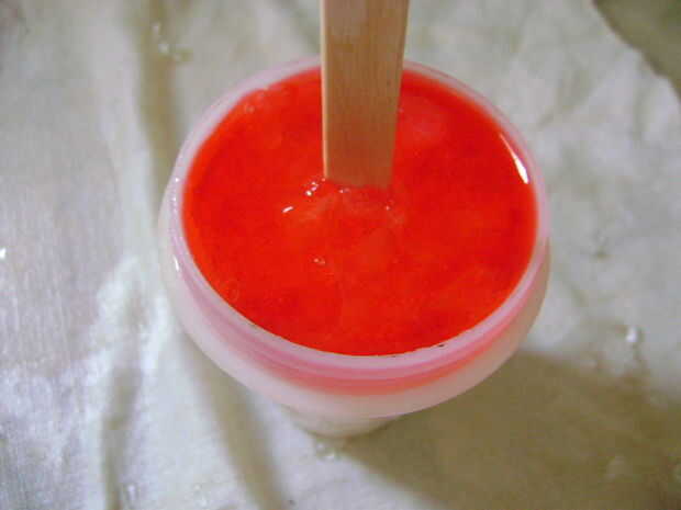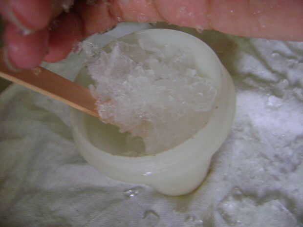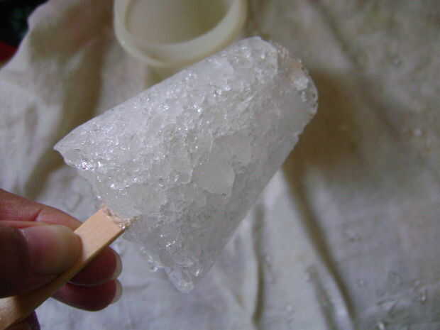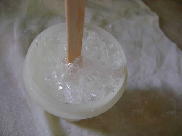 Mantener el palillo en el centro y presiona el hielo con los dedos hasta que firmemente embalado.