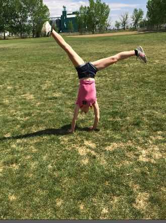 Patear la pierna trasera sobre las manos para que las piernas se dividen en el aire como la foto.