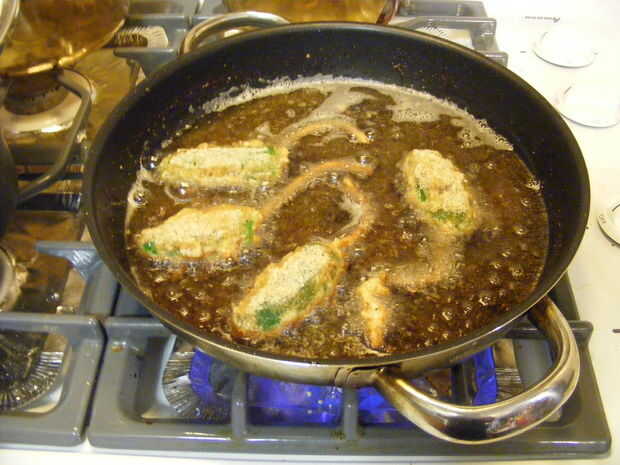 Freír en el aceite caliente en 350 a 375 º F hasta que estén doradas.