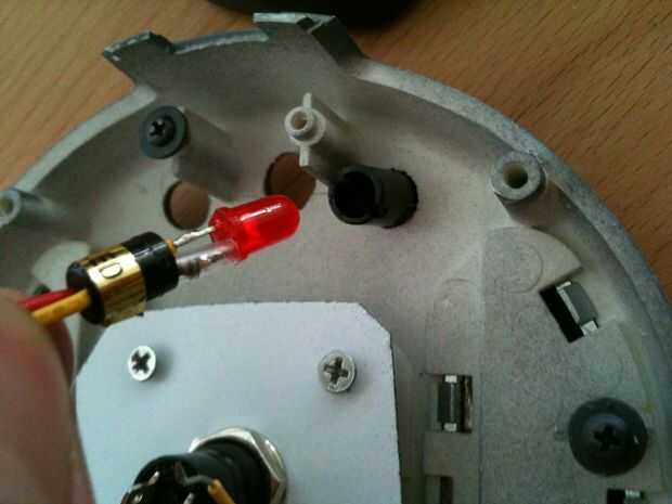 Coge todos sus LEDs y el cable de alimentación a través del orificio, o quitar el bisel, inserte en el orificio y surge el LED a través de él.