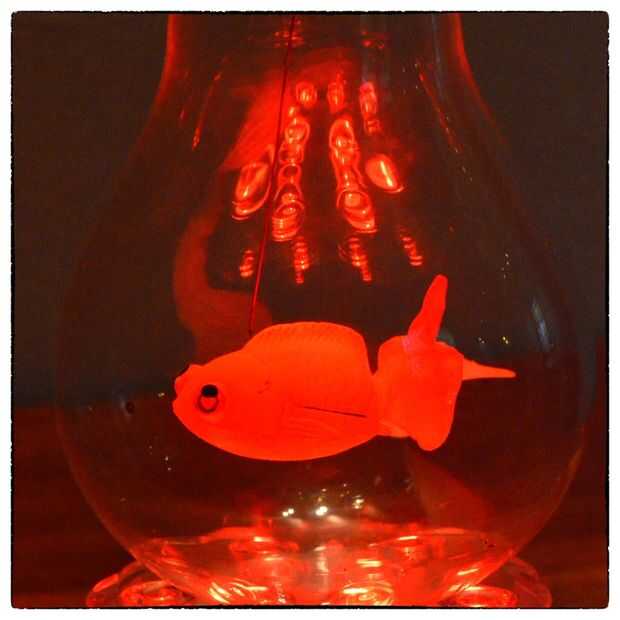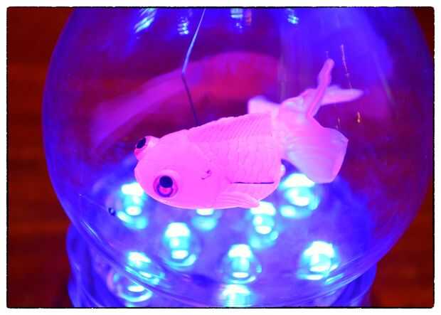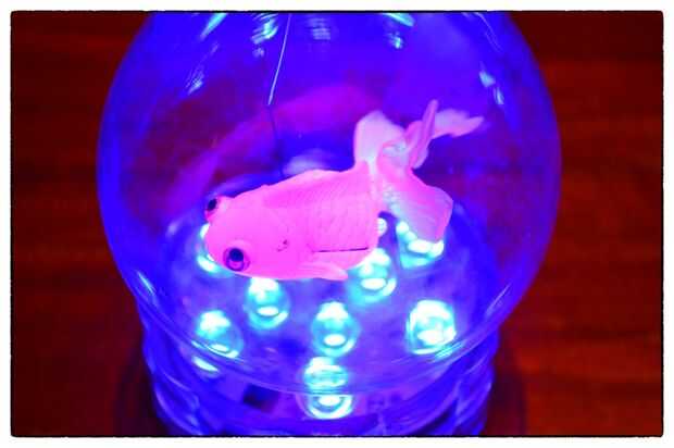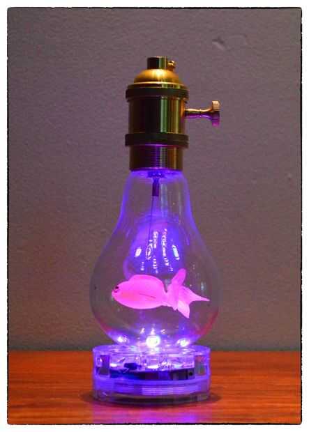 Estoy muy contento con la manera en que éste resultó. Estaba un poco preocupado acerca de cómo se movería el pececito en el bulbo pero resultó gran. Añadiendo el LED en la parte inferior era un bono como el pez se convierte en casi fluorescente en algunos colores y definitivamente añade algo especial para el resultado final.