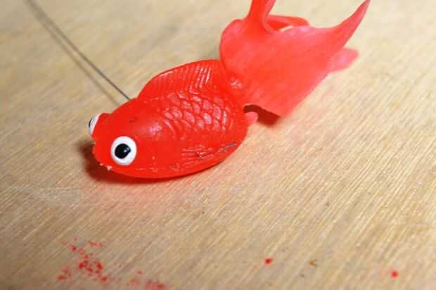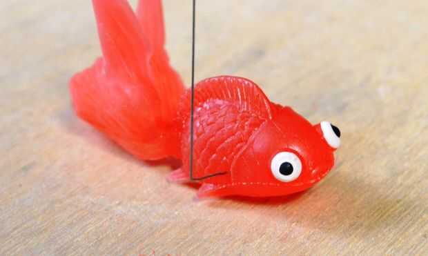 4. por último, (y esto no es algo que hizo al principio pero funcionó más adelante) tendrá que modificar un poco la cola. Descubrí que si añades un poco de super pegamento al lado de los peces y pega la cola a él, entonces no toque los lados del globo. Tuve que recortar la cola en mi inicial (que funcionaba bien así) pero pegado a la cola era mucho más fácil. Agregue el pegamento justo donde se une con la cola a los peces y doblar la cola un poco para que esté en contacto con el pegamento. Mantener durante 20 segundos y debe ser bien pegada.