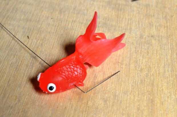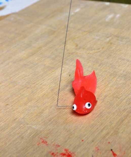 3. siguiente y esto es un poco importante, deberá decidir cuál será el radio de giro para su peces. Demasiado y llegará a los lados, muy poco y parece un poco tonto. En las imágenes inferiores vemos que sólo unos 10mm a la izquierda y luego doblar el alambre así que fue hacia arriba. Esto era demasiado pequeño. La longitud ideal del cable es aproximadamente de 15mm.