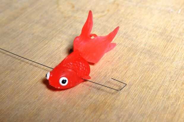 2. una vez que el alambre ha sido empujado a través, de la curva al final otra vez para hacer una forma de "U". Luego pulse de nuevo el extremo a través de los peces. Es un poco difícil de explicar pero estoy seguro de que las imágenes serán autoexplicativas