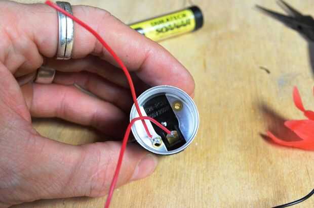 1. agregar un alambre de cobre "lengua" dentro de la toma. Doble la lengüeta hacia arriba por lo que es vertical neraly
