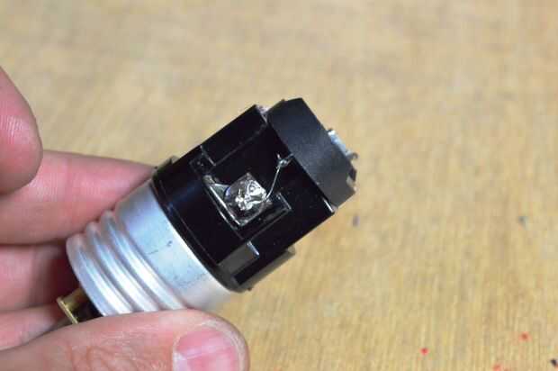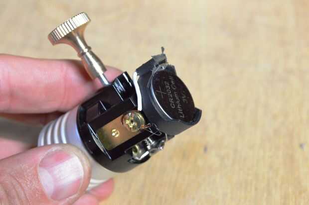 1. Coloque la batería en la parte inferior de la toma de luz con algun pegamento caliente