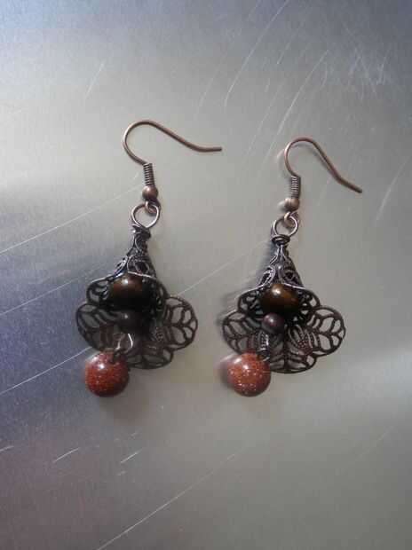 Me encanta trabajar con medios mixtos. Estos pendientes son una combinación de metal, piedra y madera. Creo que estos pendientes son elegantes y que pareja hermosa con un pequeño vestido negro, pero hice estos para dar a mi madre para su cumpleaños. :) Son muy fáciles de construir y sólo me tomó unos 10 minutos por pieza.