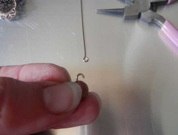 3. utilizando sus pinzas de aro, hacer la mitad de un aro.