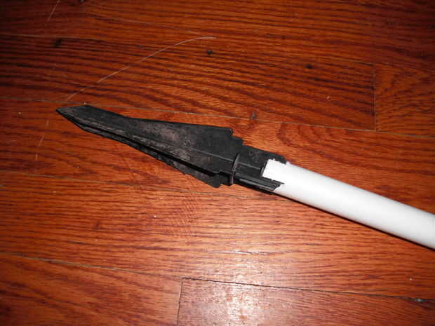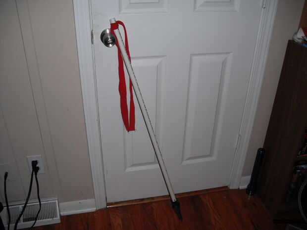 Tenía unos pedacitos de sobra de tubería de PVC de 1/2", y decidió haría buena esquina palos. Esta inspiración vino a mí después de desarmar una luz solar de la yarda no trabajan. Me di cuenta de la parte de juego salió fácilmente y podría unir a la tubería de PVC con un simple corte de T al final. Como son corte hacia abajo tenga cuidado, que terminó con una herida poco agradable en el dedo pulgar de mi esfuerzo. Parece como una lanza en este punto, usted necesita algo para mostrar de qué manera sopla el viento y hacerlo más visible. Simplemente até una banda en la parte superior similar a la parte superior de un poste NFL campo. Banderas son tradicionales para la parte superior de la palanca de la esquina, y si le sucede que tiene un parche en el instructable robot, creo que sería bastante corriendo en el centro. Puede utilizar cualquier cosa realmente, parte de una camiseta, saco de basura plástica, lo que puede estar vinculada a la parte superior y hacerlo visible.