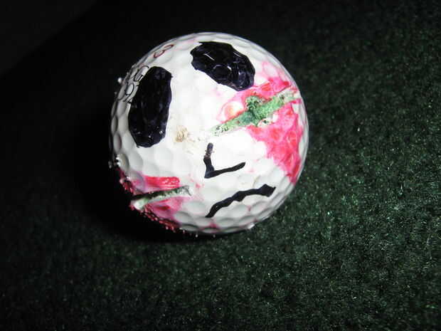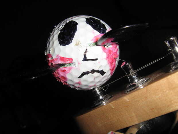 Se necesita:-Pelota de golf-Tornillo ojo-Ojos saltones-Espuma de artesanía rojo, blanco y negro-Pegamento (usé pegamento caliente, puede utilizar cualquiera te gusta)-Pintura acrílico negra-Herramienta giratoria para perforar agujero (opcional - no t