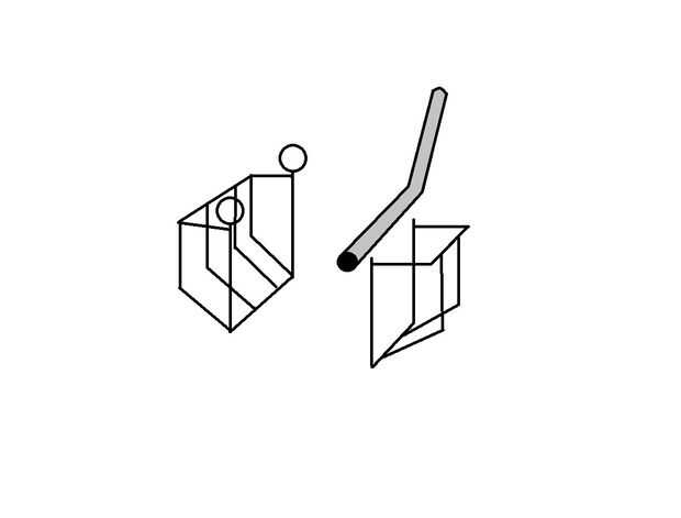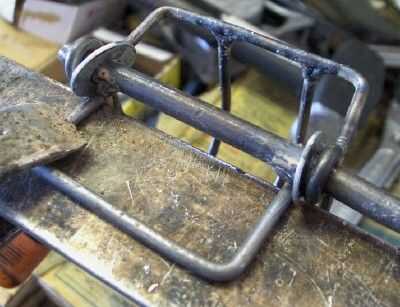 Mira la pieza izquierda. Lazos de la curva en varilla de 1/8 de pulgada lo suficientemente grande como para mover sin problemas cuando en un eje de 1/4 de pulgada. Doblar la varilla de 1/8 de pulgada para hacer una pieza en forma de "U". Hacer otra pieza en forma de "U" y soldar por debajo de los lazos. Agregar las costillas. No hay número de costillas es necesario. Sólo asegúrese de que cualquier abertura dada no es lo suficientemente grande como para pasar una pelota de golf.