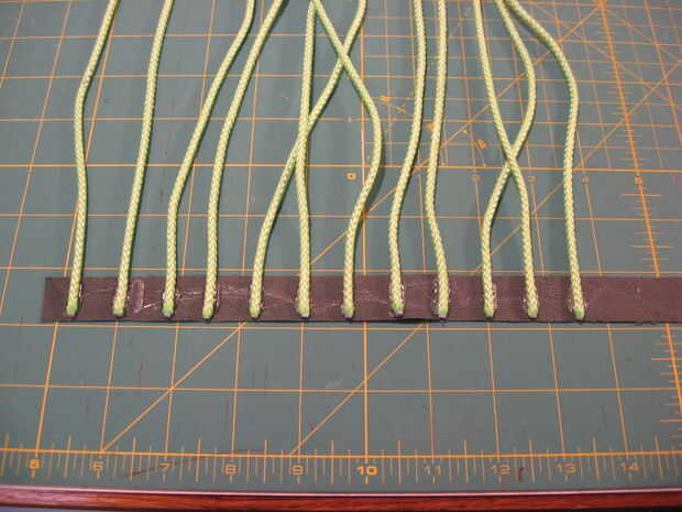 Hacer lo mismo con el largo 12 pedazos de cuerda y las tiras de 10 pulgadas de tela.