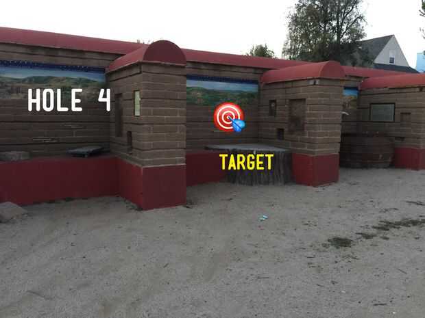 Agujero 4 es muy similar al hoyo 3, con el objetivo de la segunda a la derecha espacio cerrado junto a la zona de meta en el agujero 3. Hoyo 5 es más a lo largo de la superficie sembrada elevada a la derecha.