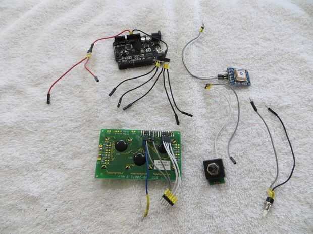 Dependiendo de la caja que utilizas, cabeceras rectas en el GPS, el LCD y el codificador pueden interferir con las tolerancias de holgura. En la mía, no tengo suficiente espacio y ya tenía cabeceras soldadas en (recto, estilo protoboard los), pero no tenía cualquier encabezado de 90 grados por lado, usé sólo los cables de puente mujer a doblarse las cabeceras existentes.