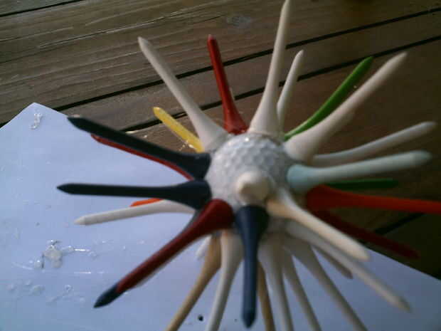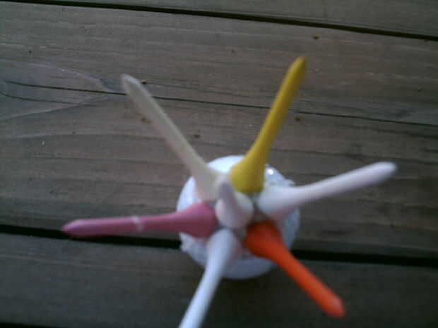 Attatch los tees de golf sólo Unte el pegamento en la parte inferior de la t luego rápidamente colocar el tee en la pelota de golf.