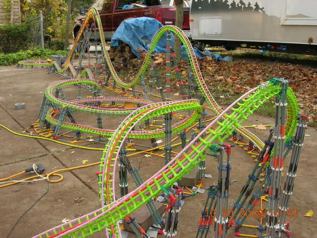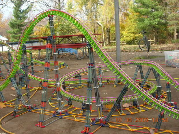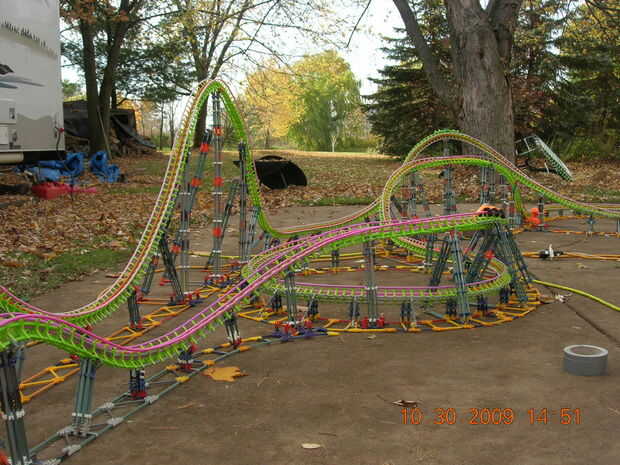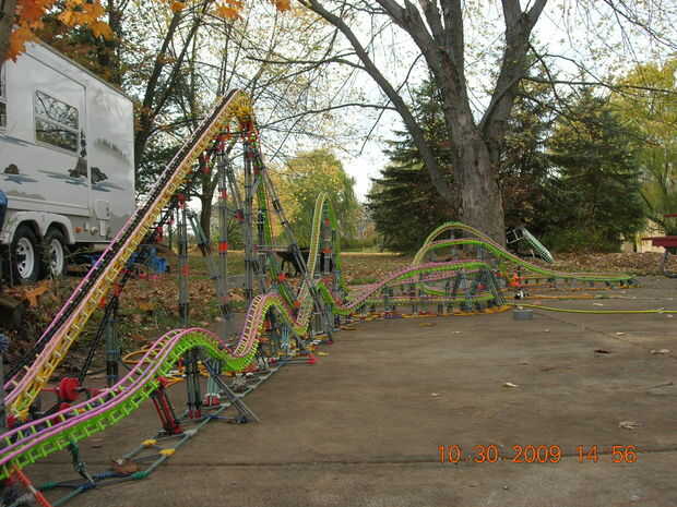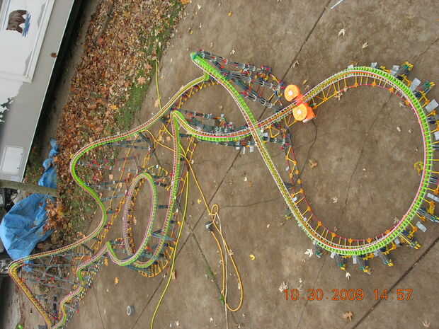 esta es la elevación de la colina principal, grado 102 invertida gota y descabellado giro cosita (no sé que es el término técnico = D) de un Eurofighter acero montaña llamada paseo de SAW-The, en Thorpe Park. Cuando construí este no tenía suficiente