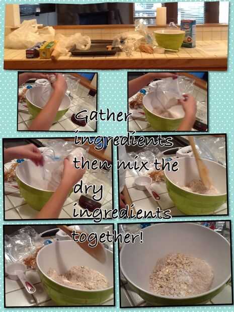 Mezclar la harina de trigo, avena y polvo de hornear en un tazón grande.