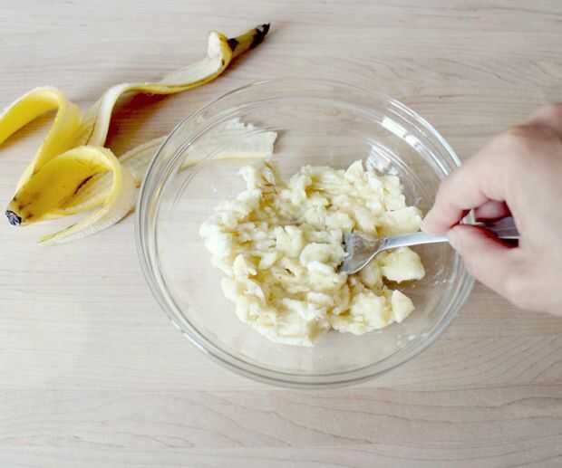 En un tazón pequeño puré hasta el plátano sin cáscara con un tenedor.