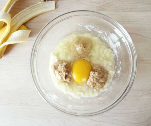 Añadir la mantequilla de cacahuete y huevo. Revuelva con un tenedor o cuchara hasta mezclar completamente.