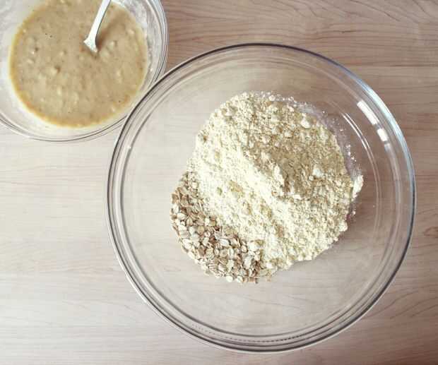 En un tazón mediano, mezcle bien la harina de avena y gramo.