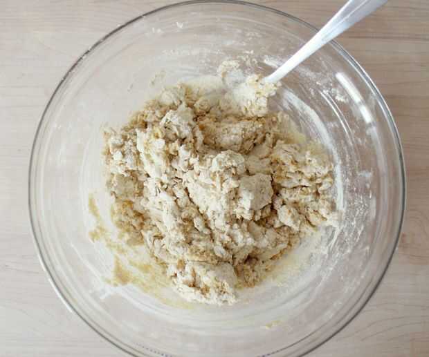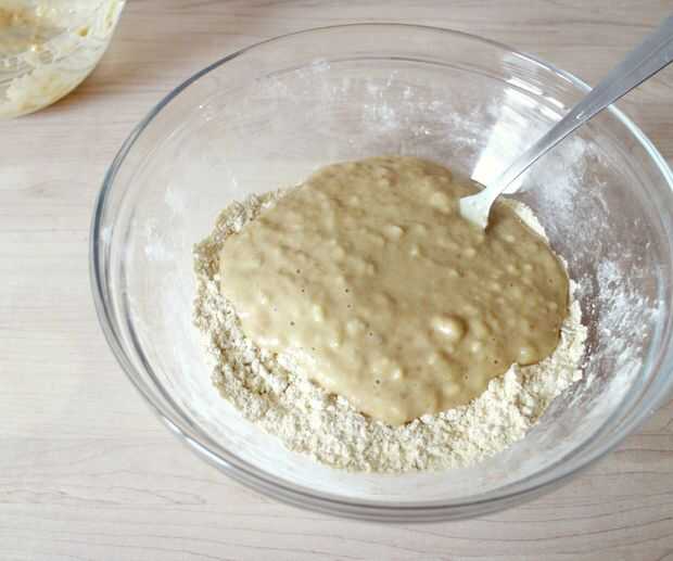 Ahora, añadir a la mezcla húmeda a la seca y mezclar hasta que la masa forme una bola.