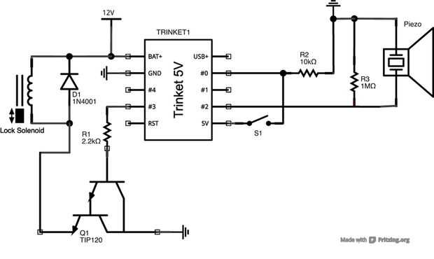 1: el Piezo. El zumbador piezo en la parte posterior de la PCB de la soldadura por lo que puede ser instalado al ras contra el escritorio, cajón/etc. y oír golpes más claramente.