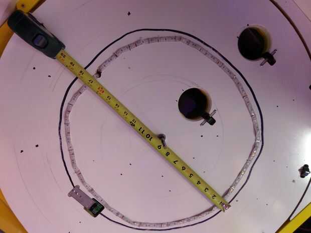 El tornillo en la parte inferior del campo de juego, o pin. Para que el juego sepa dónde está la rueda, debe ser marcado en la parte inferior. Colocación de tira de LED bajo esta tiene un potencial para agarrar y desordenar su creación.