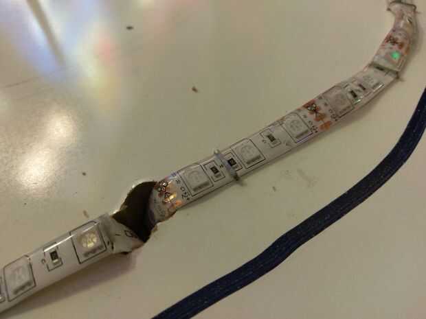 Consejo: Tienen los LEDs conectados, en blanco. Puede activar el brillo hacia abajo para guardar sus ojos, pero la pistola de grapas que era sólo lo suficientemente amplia como para los LEDs. Si golpeas la tira será capaz de decir si su cortocircuitar algunos o no. Blanco usa todo 3 rojo verde y azul.