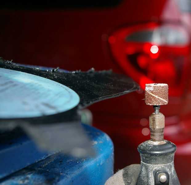 - Use movimientos suaves, largos con el tambor de lijar. Fue sorprendentemente fácil obtener el vinilo extra eliminado y hasta en las líneas de traza.