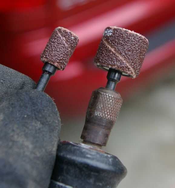 1. use los pedacitos de lija con la herramienta rotatoria para hacer la siguiente parte. Usé la 1/2" lijado bit/tambor para lijar exterior y 1/4" para la apertura de recolección del cuello.
