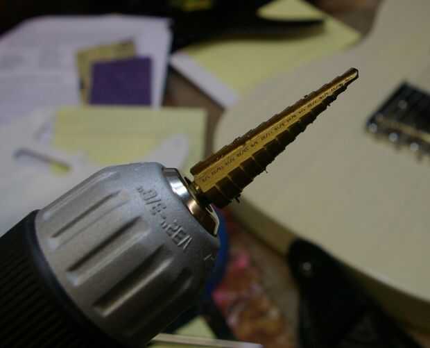 5. Haga los agujeros en el registro usando una broca graduada. Las broncas graduadas son absolutamente necesarias para perforar cualquier tipo de plástico. Si usas una broca normal, el registro terminará rompiéndose alrededor del agujero. Compré un juego de estas brocas de Harper´s carga y las recomiendo pecado reservación. Funciona muy bien para perforar los plásticos, e incluso los metales finos. En serio, los 8 dólares mejor gastados en mi vida.