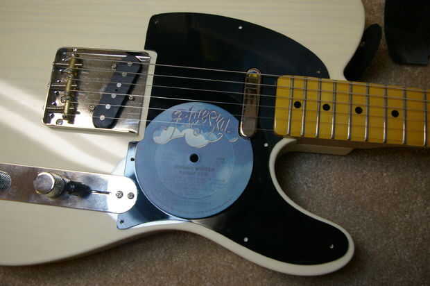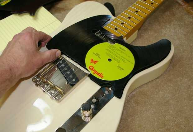Como se puede ver en los pasos anteriores, los agujeros en el cuerpo de la guitarra se alinearon muy bien con los del nuevo golpeador. El último paso es averiguar qué tipo de tornillos vayas a usar. Dado los registros son muy ondulados y frágiles, no recomiendo que lo avellanes el golpeador de vinilo. Estoy pensando en usar un tornillo de cabeza redonda.