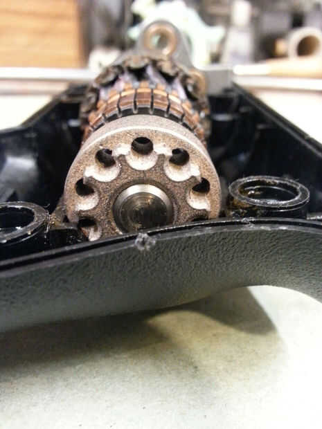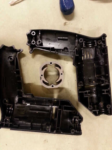Cuidadosamente Quite el motor y engranaje. Podría ser una buena idea tomar una foto primero para que puedas conseguir todo lo nuevo en correctamente. Limpie el cuerpo con agua y jabón. Nos se ser fijar el hardware en el interior de la cubierta con el pegamento por lo que es importante que todo lo limpia. Quitar la grasa de los engranajes. Limpiador de carburador y un viejo cepillo de dientes un gran trabajan para ello.