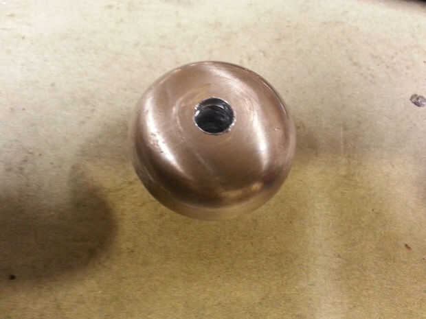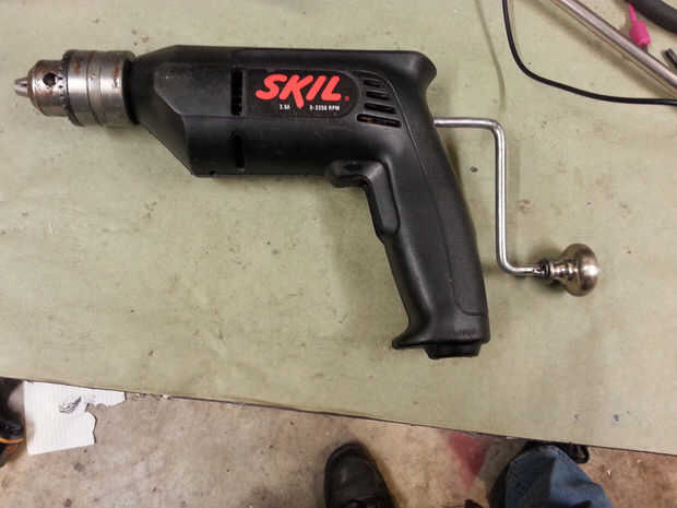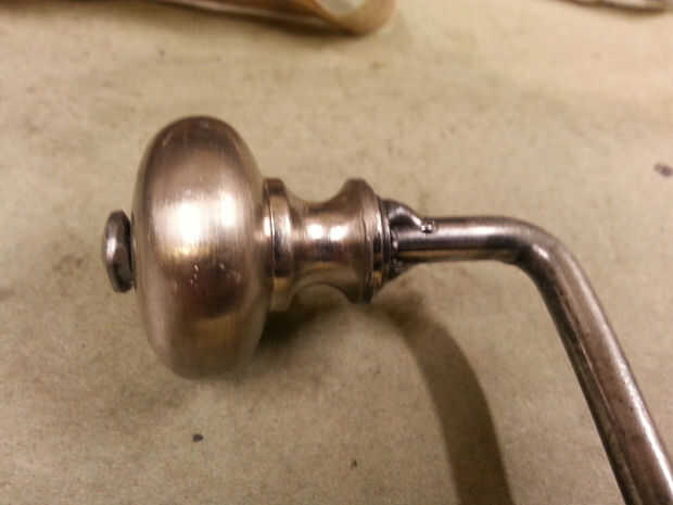 Perfore un agujero a través de la perilla de metal. El agujero debe ser lo suficientemente grande como para permitir que la perilla para girar libremente en el mango. Soldar una arandela pequeña por encima y debajo de la perilla para sostenerla en lugar.
