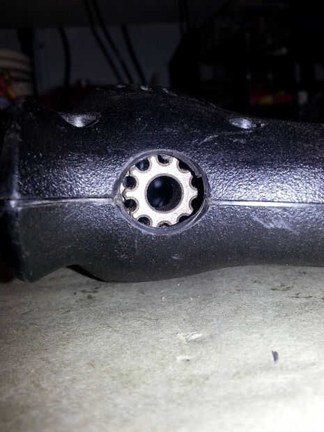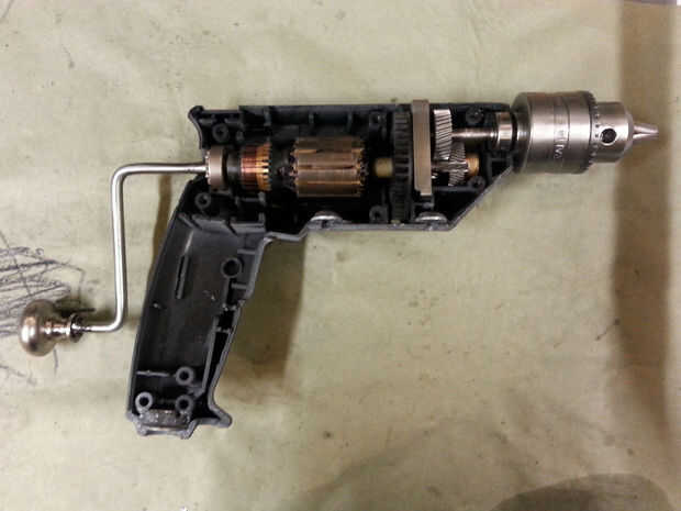 Con el funcionamiento interno del taladro todavía quitado, coloque a los que dos tienen de la cubierta detrás junto. Inserte suficiente tornillos para sostener juntos. Perfore un agujero a través de la cubierta exponiendo el eje del motor.