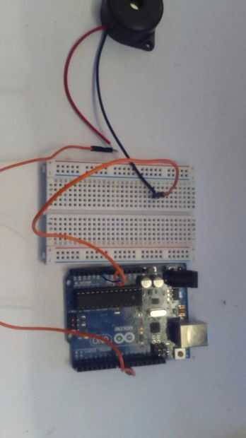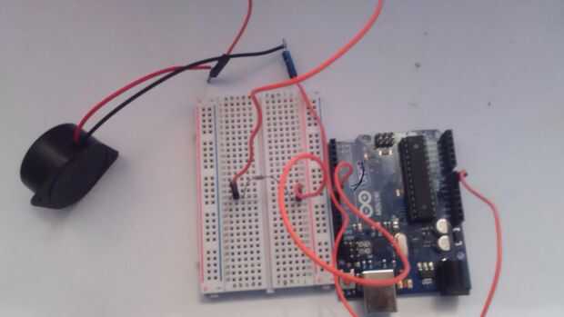 Un piezoeléctrico unido al pin analógico 0 con un resistor de 1 Megohm
