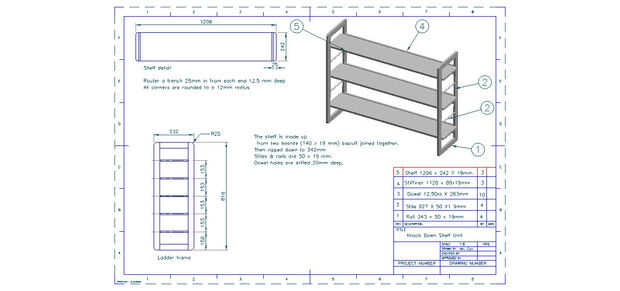 Los estantes son dos piezas de 140 x 19 mm pino galleta se unieron luego Ripeado hasta un ancho de 242 mm.