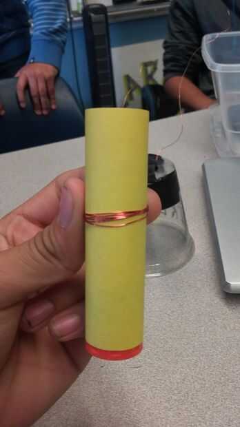 MaterialesAlambre de cobre (calibre 28)2 imanes de neodimio2 tazas de plásticoCinta aislanteCinta para ductosPapel de lijaPalillo del pegamento (2cm de diámetro)Cortador de alambreTijerasEnchufe AUXEnvoltura de aluminioTablero de tarjetaPaso 1: enrol
