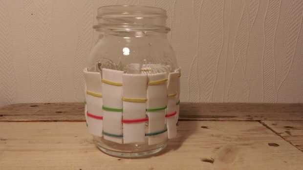 Corte tiras de espuma de poliestireno lo suficientemente grande para las manos no para tocar el vidrio cuando se mantiene el frasco.