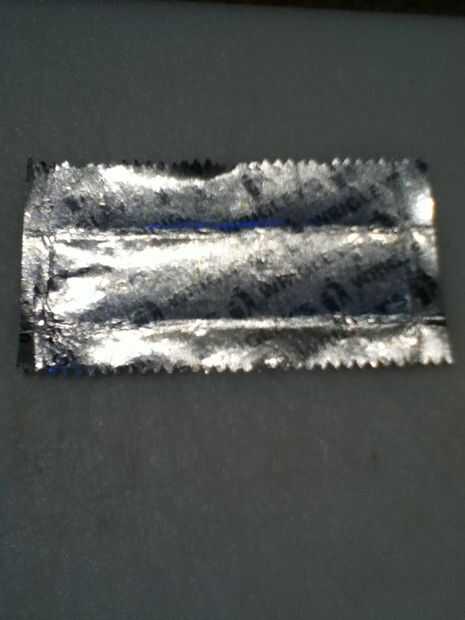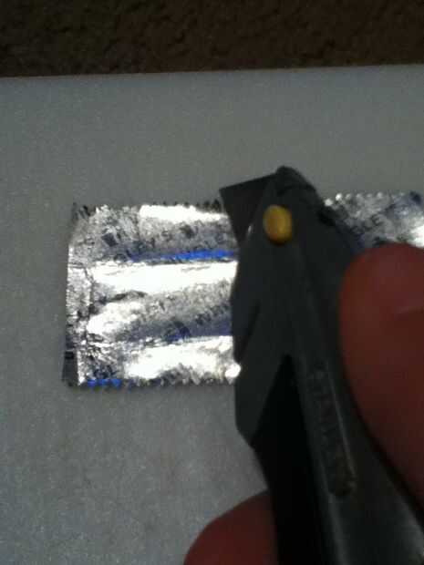 Cortar la envoltura como pequeño como se puede hacer y todavía se mantenga el polvo. Vierta el polvo.