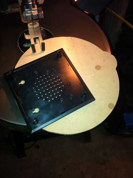 Después de un par de minutos de hurgar en la nueva base de gumball, placa base y placa de circuito, fue capaz de determinar un lugar en la placa base donde la placa de circuito tiene espacio libre, no arco corto circuito y todavía tiene el interruptor accesible. Había trazado la huella de la placa de circuito (y agujeros) en la placa base. Luego coloca la placa base original sobre la traza y antes los orificios de ventilación actual como una plantilla para los agujeros de ventilación de nuevo. Ahora, para ser claros, tenía un rectángulo y una serie de puntos, en pluma, dibujada sobre la nueva placa base. Taladrar todos los agujeros de ventilación con una broca de 5/64. Luego perforar agujeros para los tornillos, teniendo cuidado de no perforar a través de todo el camino. Rebusqué hasta tornillos más largos porque los tornillos cortos no eran tiempo suficiente para que los nuevos soportes. Tomó palitos de acrílico (tubos) y cortar en longitudes de 1/4". Usted puede encontrar los tubos de acrílico en el Departamento de fabricación, mina se salvaron de paletas real desde antes de que estuvieran disponibles para el consumidor. Caliente pegué los tubos de 1/4" a la parte inferior de la placa, donde estaban los agujeros de montaje.